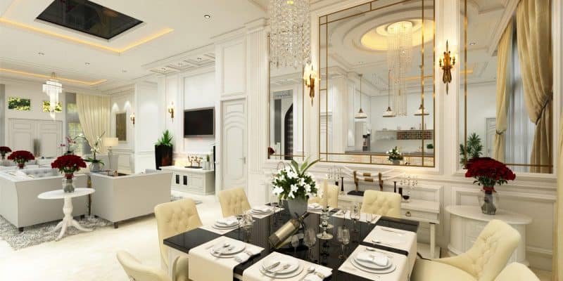 Interior pada rumah model american klasik, Kategori bagian interior pada bangunan rumah klasik, dengan fitur standard rumah tiga lantai yang telah di tetapkan, dimulai dari penggunaan jaringan terpadu pada setiap instalasi kamar, dan fitur sanitasi serta sirkulasi ari bersih turut ikut di kondisikan pada bagian perencanaan rumah ini, Titik tabung racun api (fitur keamanan anti kebakaran) dan exhauts (pengganti sirkulasi udara) serta retur (titik balik sirkulasi udara) ikut di jelaskan pada gambar kerja bangunan, setiap jaringan di menggunakan ISP Indihome.